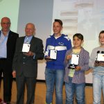 9. Il terzetto secondo classificato al Trofeo delle Regioni di minicross (Lesiardo, Bosio e Nava) che vediamo con il manager Luigi Galizzi e il vicepresidente FMI, Larceri.