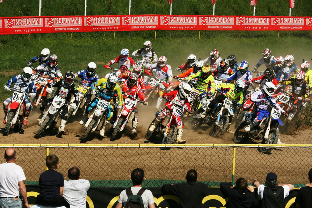 08 Partenza prima prova MX2 B; al comando è Todeschini (165), seguito da Fumagalli (520) e Beltrami (201).