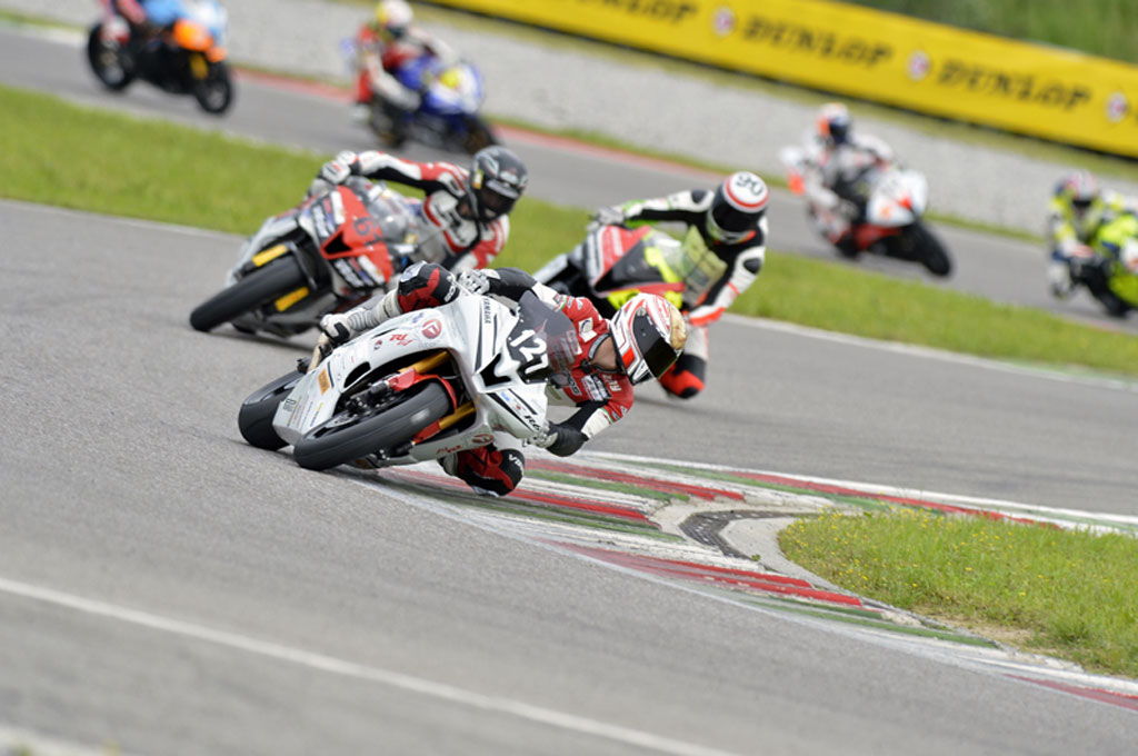 Gara 1 A. Alla prima curva sgusciano lesti Rizzardi e Andressi imprimendo un elevatissimo ritmo alla gara, inizialmente tallonati da Signani, Carnevale e Grava; a metà gara emerge D’Angelo costretto a recuperare una cattiva partenza, ma il suo recupero si ferma al terzo posto dopo aveer superato Carnevale e Signani.