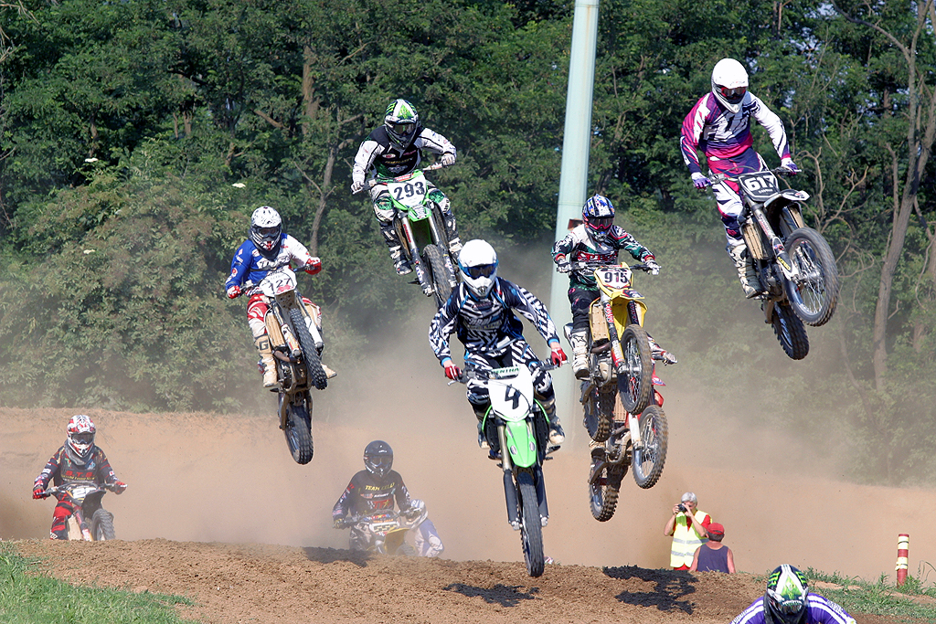 02 Partenza della MX2 con Terraneo (618) gil al comando affiancato da Roberto Pievain (250) e seguito da Gallo (426) che copre parzialmente Oldrati, quindi Alberini (173), Cordovez (909 che sommerà un ritiro a un quarto posto), Andrea Pievani (33) e Piercarlo Rota (36).