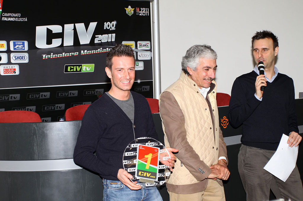 05 Per la categoria Sport del regionale supermoto sono stati premiati il vincitore Roberto Giustacchini (al centro) e Cristian Premoli, terzo classificato: Assente il secondo, Stefano Biella.